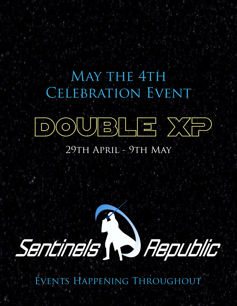 Sentinels Republic are pleased to announce that as part of the “May the 4th be with you” Celebrations we will be running several Events over the period starting 29th April until 9th May so watch out for those and come join in, with lots of exciting loot to be won you won’t want to miss out.