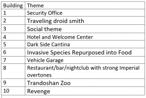The route comprises 10 buildings and the order on the tour was made by a random number generator. All the buildings should be open and accessible to players – any issue please do get in touch with me. Whilst there was no theme set by the team, the players were asked to set their own theme. They are as follows: